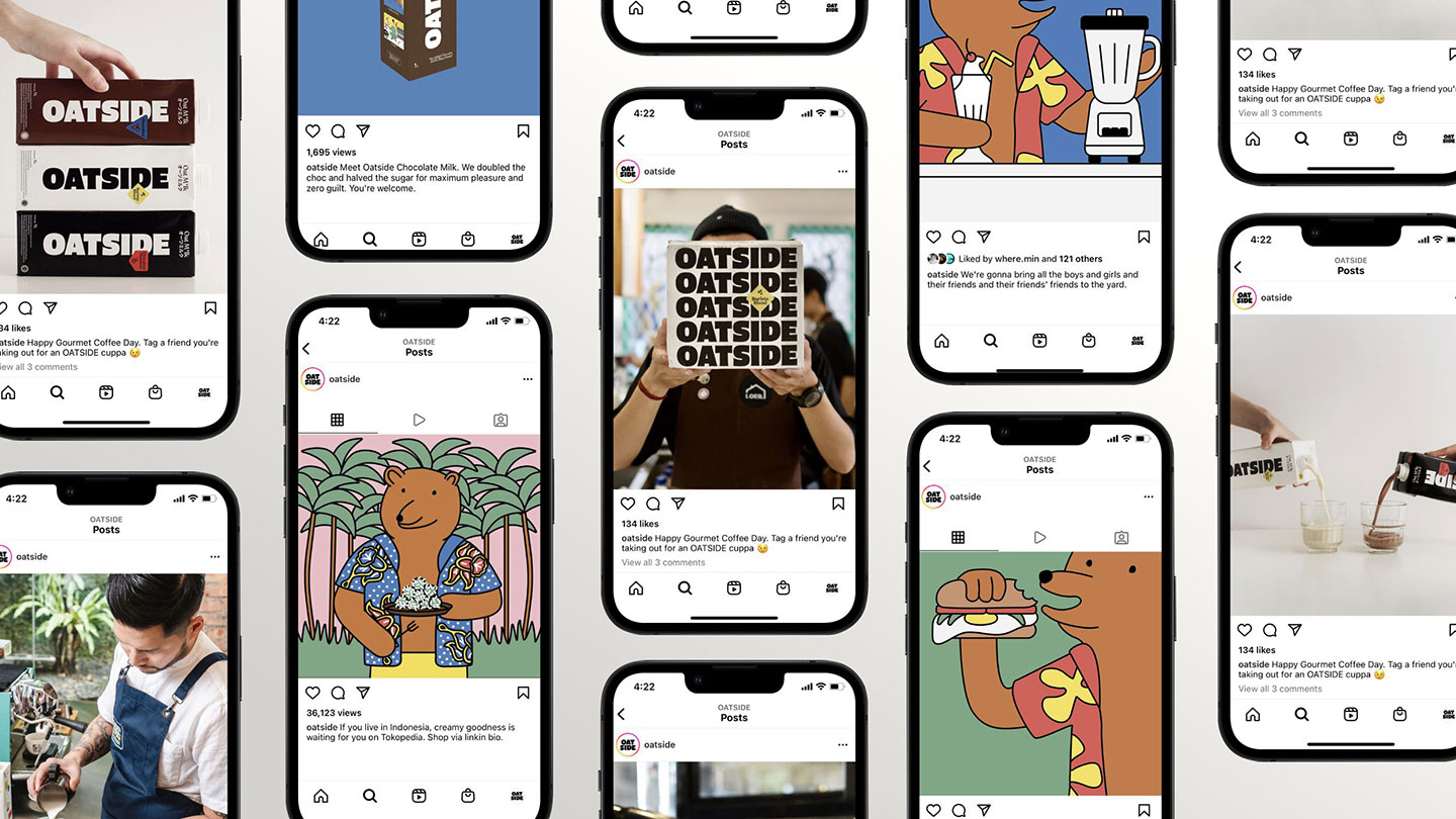 To introduce the world to this creamy and delicious new oat milk, we launched the Oatside of Life, a playful look at our everyday adult lives, prodding milk drinkers everywhere to look up, smile, exhale and enjoy the little bits of goodness Oatside has to offer.
